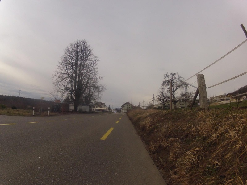 Ich rechnete eigentlich damit, gegen das untere Ende des Bünztales, dort wo die Bünz ins Aaretal gelangt, in die Windböen des kommenden Wintersturmes zu gelangen. Doch nichts passierte. Im Birrfeld noch ein paar kräftige Windstösse von hinten, vermutlich dem Föhn. Dann herrschte Windstille.