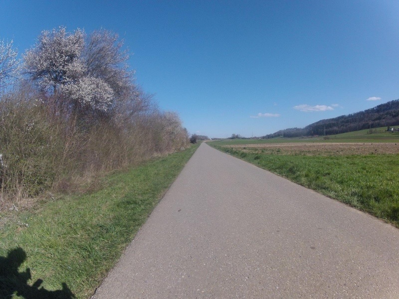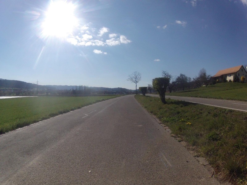 Weil die Bise immer noch blies, wählte ich heute zu Beginn der Fahrt, eine Strecke gegen den Wind. In nördlicher Richtung das Aaretal hinunter bis nach Döttingen, dann das Surbtal hinauf. Schon im Aaretal war der Wind teils recht heftig. Ich hoffte, dass diesmal die Bise eher ein Nordwind sein würde, und ich daher im west-östlich verlaufenden Surbtal vielleicht eher im Windschatten der Hügel fahren könnte.