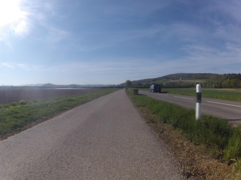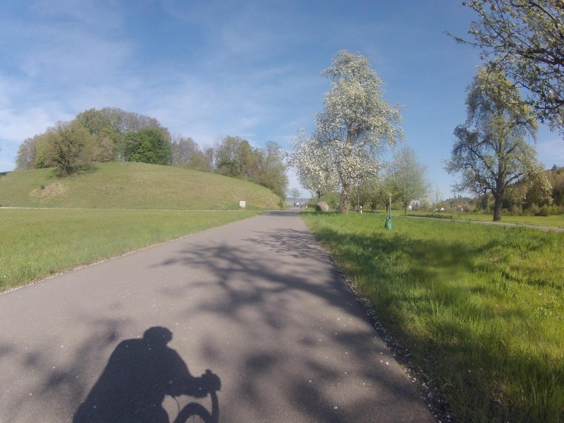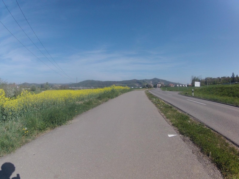 Heute startete ich in die Gegenrichtung. Also zuerst ein Stück nach Westen und anschliessend auf der Radroute 34, dem alten Bernerweg, wieder zurück. Die Bise von gestern hatte deutlich nachgelassen, es war auch merklich wärmer.