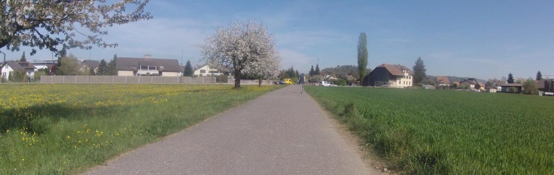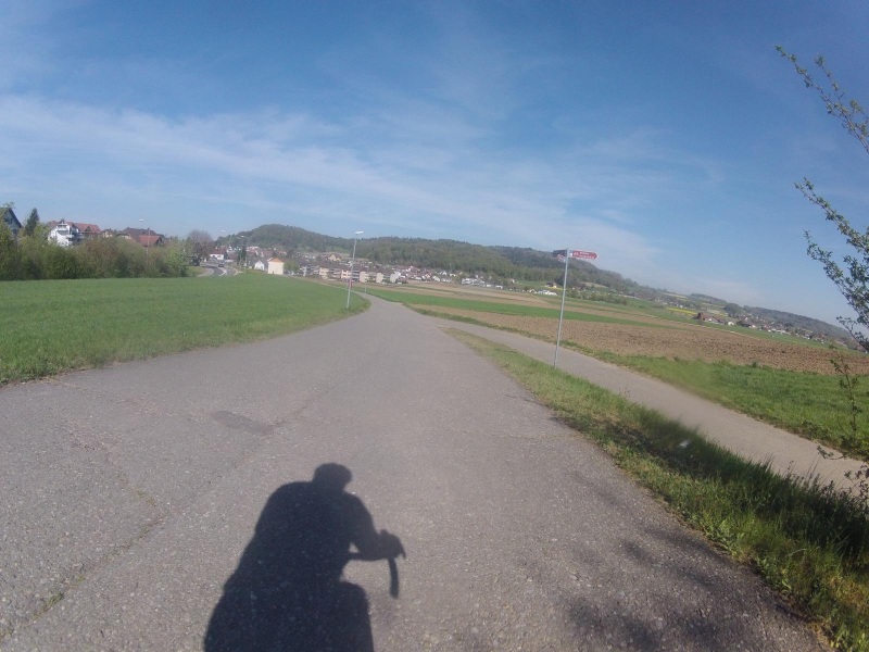 Nach einer ersten Steigung und einer hügeligen Durchfahrt durch Hunzenschwil wird es vorerst flach. Nach den Häusern im Hintergrund folgt nochmals eine lange, flache Ebene, bis ich nach Lenzburg komme.