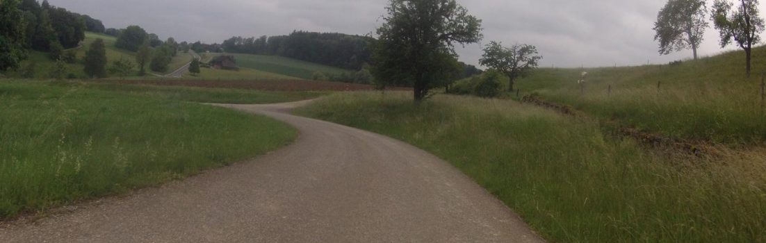 Ich wollte mich nur mit Armlingen und Beinlingen und einem Windjäckchen begnügen. Ich verzichtete auf die Thermowäsche. Schon bald aber musste ich einsehen, dass ich so bekleidet wohl nicht lange in der Gegend herumkurven kann. So wählte ich notgedrungen eine Runde über unsere Hügel am Ende des Juras.