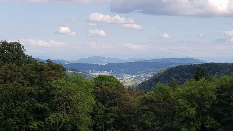 Weil ich diesmal die Passhöhe von Norden her erreicht habe, gibt es ein Foto in Richtung Süden, in Richtung Limmattal. Die Alpen im Hintergrund waren für das Handy wohl nicht mehr sichtbar, zu dunstig, zu wenig klar die Sicht.