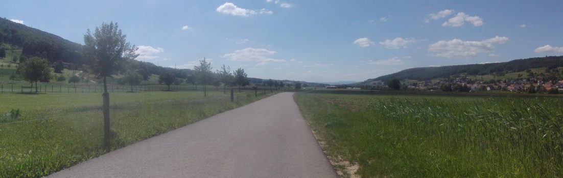 Schon seit längerer Zeit ist mir der neu geteerte Radweg das Surbtal hinunter aufgefallen. Noch zu Zeiten meines Arbeitsweges war das hier stellenweise ein richtiges Geholper. So, mit diesem feinen Belag läuft es natürlich richtig gut. Insbesondere heute, wenn die Bise noch etwas schiebt.