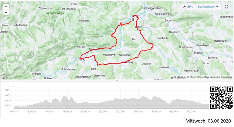 Statt der Staffelegg nahm ich deshalb wieder einmal das Wellenblech unter die Räder. Steil bergauf, dann eine Weile lang auf und ab, ein letzter Schlussanstieg und schon geht es wieder hinunter nach Biberstein, und so auch zurück ins Aaretal.