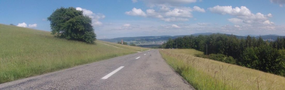 Nach der Passhöhe lasse ich es ins Fricktal hinunter sausen, nehme aber bei Hornussen bereits den Weg aus dem Fricktal hinaus, hinauf auf einen der Hügel. Einen Moment lang geniesse ich die schöne Aussicht über das Fricktal,