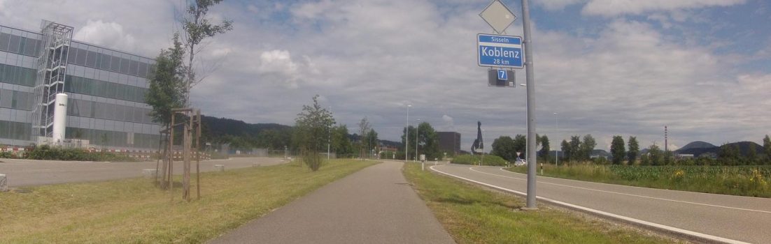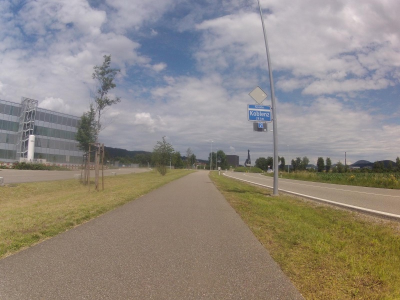 Ab jetzt geht es knapp 30 Kilometer, mehr oder weniger dem Rhein entlang bis zur Aaremündung hinauf. Teils auf Radwegen, teils einfach nur auf markierten Radstreifen.