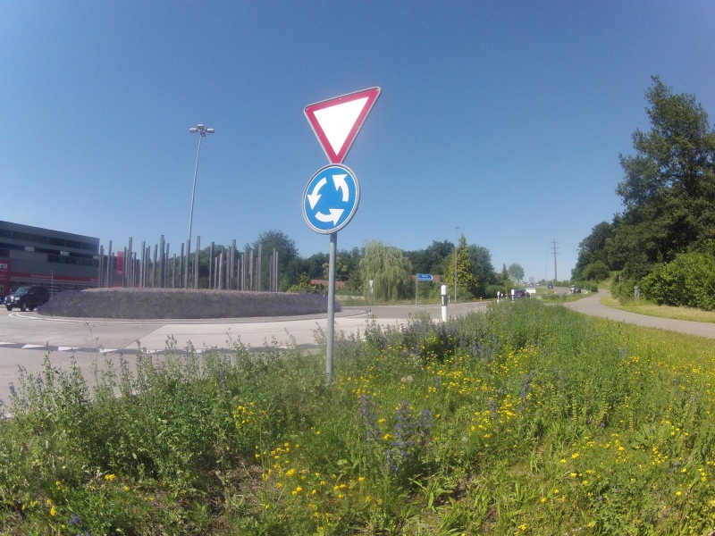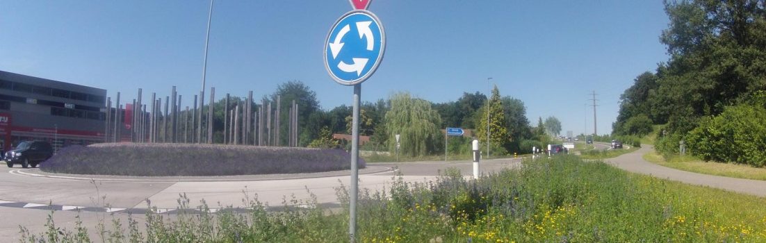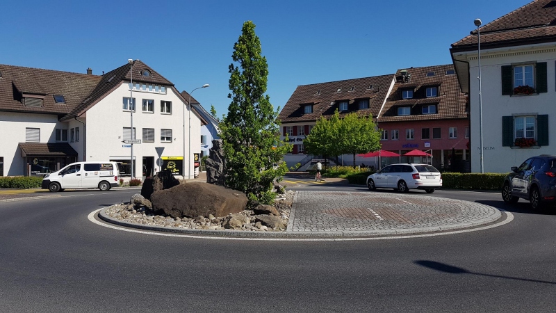 Kürzlich hatte ich ja schon mal während einer ganzen Rundfahrt lang, ein paar Strassenkreisel fotographiert. Im Aargau soll es über 100 Strassenkreisel geben. Nicht alle werden ein Kunstwerk, oder eine Darstellung in der Mitte haben. Einige werden etwas aussagefähiger sein, einige vielleicht eher Reklame für eine Unternehmung in der Nähe. Andere geben vielleicht Auskunft oder Hinweise auf die Gegend, die Geographie, die Geschichte. Wie auch immer: das Thema beginnt mich zu interessieren. Schon möglich, dass hier deshalb demnächst weitere Fotographien von Strassenkreiseln erscheinen, vielleicht sogar mit etwas Hintergrundinformationen zum jeweiligen Ort. Mal sehen, was sich da machen lässt.