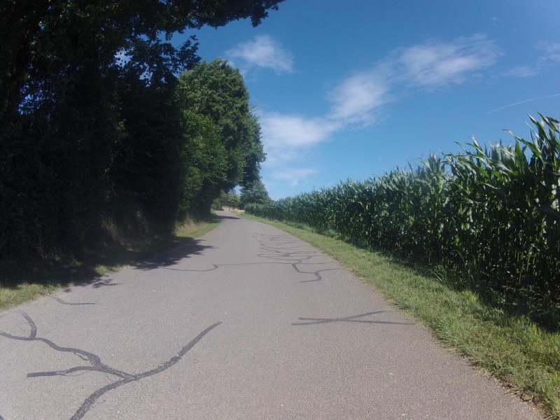 Die Maisfelder sind teilweise schon recht hoch. Sie verdeckten jedenfalls schon an einigen Orten die Sicht.