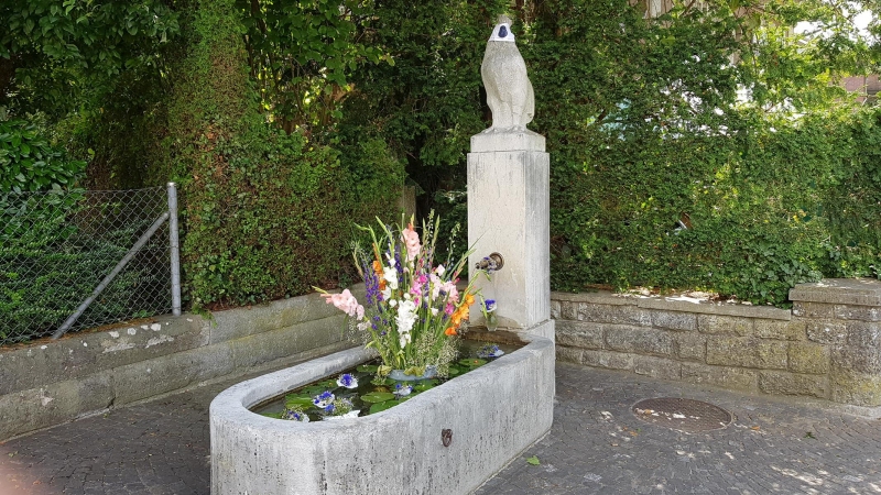 In Lenzburg fahre ich dann zufällig an einem schön geschmückten Brunnen vorbei.