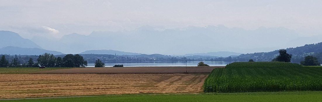 Ich erwische gerade einen Moment ohne Sonne, vielleicht ist es auch deshalb etwas eigenartig trüb. Der Alpenkamm kann kaum erkannt werden.