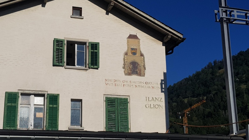 Vor der Abfahrt in Ilanz hatte ich noch ein bisschen Zeit, mich in der näheren Umgebung umzuschauen. Dabei ist mir diese Kleinigkeit am Bahnhofsgebäude in Ilanz aufgefallen.