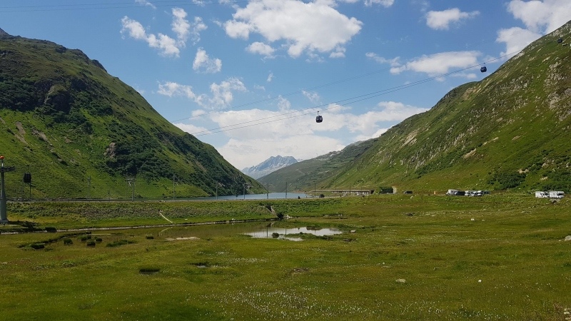Nach dem Mittagessen mussten wir nur noch über diese Ebene fahren und es anschliessend nach Andermatt hinunter sausen lassen. Die Passstrasse ist wunderbar, man kann sich sogar ab und zu einen Blick ins Urserental hinüber, Richtung Furka, leisten.