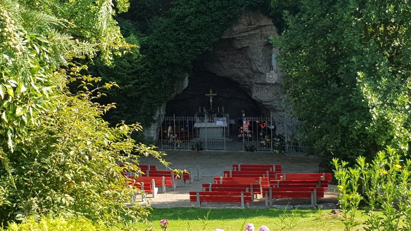 Der Radweg führt dort an der Lourdes Grotte vorbei.