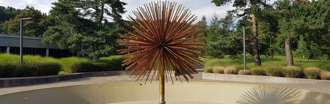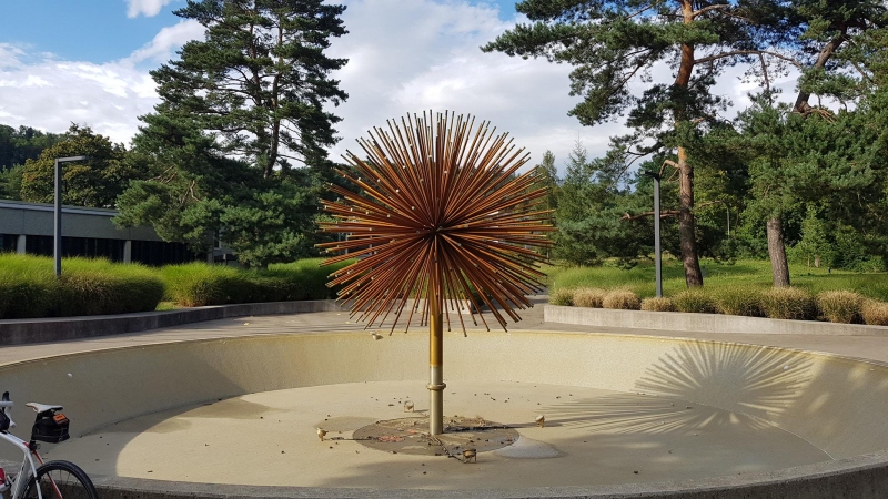 Die Stadt Baden durchquerte ich im Feierabendverkehr, hinaus nach Dättwil. Nach einem kurzen Umweg entlang der Autobahn auf Kiesstrassen, um auch die letzten virtuellen Munzees vor dem Baregg-Tunnel noch zu holen, statte ich dem Brunnen vor dem ABB-Gebäude in Dättwil noch einen kurzen Besuch ab.