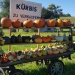 Dass der Herbst nun unübersehbar vor der Türe steht, bezeugt wohl diese erste Auslage an Kürbissen, die ich heute im Surbtal gefunden habe.