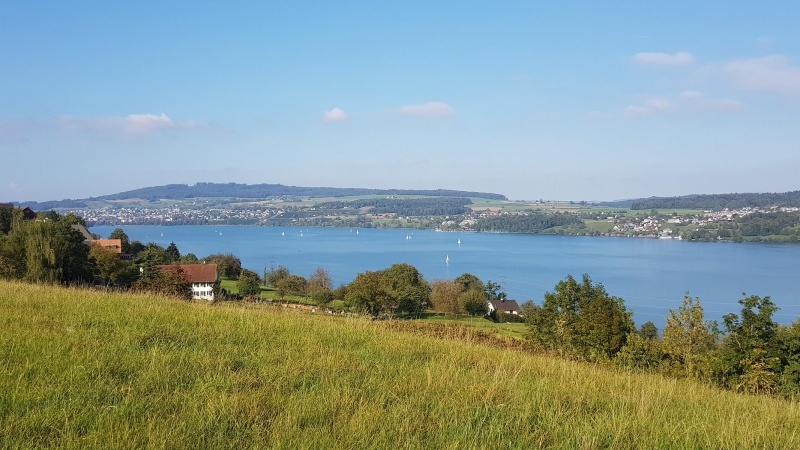 Für den Rückweg das Seetal hinunter, wählte ich heute die westliche Seite, die mit weniger Verkehr. In Stäfligen, am Baldeggersee, den obligaten Blick zurück. Die Sonne war immer noch mit dem Auflösen der Nebelschwaden beschäftigt, Fernsicht in Richtung Alpen, so gut wie keine.