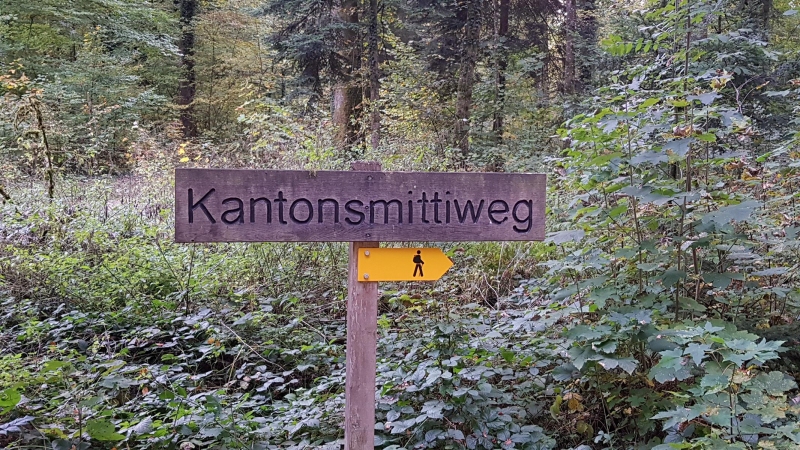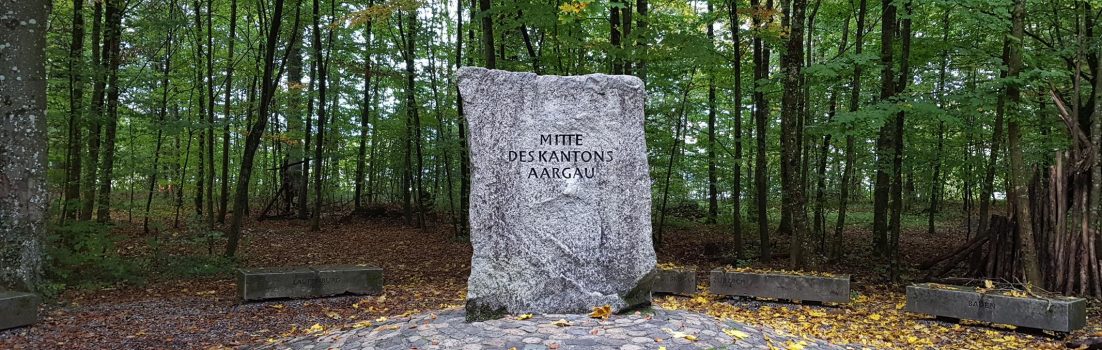 Ausserhalb von Wildegg, in einem Wald, fiel mir der Wegweiser zur Kantonsmitte auf.