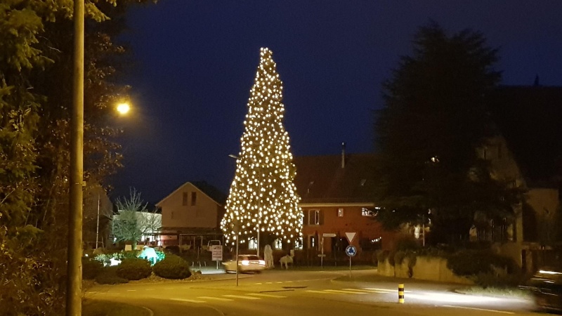 Ab dann wechselte ich nach Dättwil hinüber ins Reusstal und gelangte so nach Birmenstorf. Alljährlich wird hier dieser riesige Tannenbaum mit vielen Lichtern geschmückt.