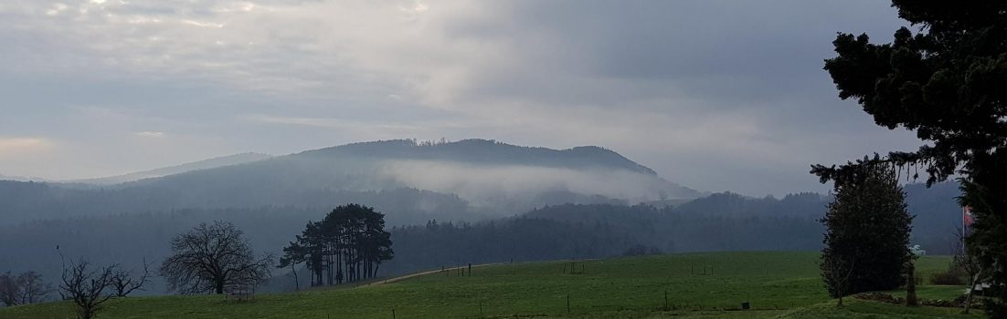 Weiter nördlich, und damit sicher unter die Nebeldecke zu fahren, hatte ich auch nicht wirklich Lust. So entschied ich mich, vom Bözberg etwas hinten herum hinunter ins Aaretal zu fahren und anschliessend in Richtung Baden. Auf obigem Bild befindet sich Baden direkt vor dem markanten Hügel in der linken Bildhälfte.