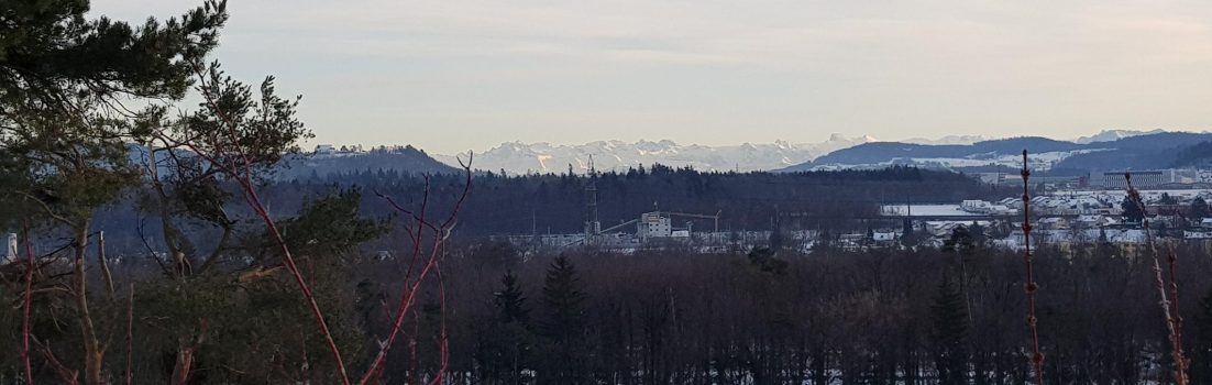 So fuhr ich denn das Aaretal hinauf bis nach Auenstein. Etwas in der Höhe hatte ich dort einen recht guten Blick hinüber zu den Alpen. Die prognostizierten heftigen Stürme sind bis jetzt noch ausgeblieben, nur die Sicht in die Ferne deutet auf die Föhnsituation hin.