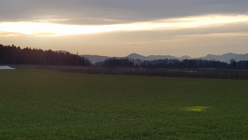 Erstaunlicherweise sind hier die Strässchen, obwohl mitten durch die Äcker, geteert. Es scheint der Gemüsegarten einer grösseren Gärtnerei zu sein. Einiges ist mindestens für die nächste Bepflanzung schon vorbereitet, wenn nicht sogar schon frisch angesät.