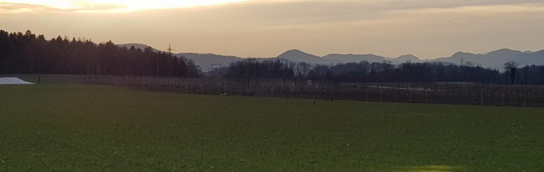 In Döttingen bog ich rechts weg ins Surbtal hinein. Alles auf Radwegen, meist etwas neben der Hauptstrasse, entlang dem einen oder anderen Waldrand. Ich glaube der letzte kräftige Schneefall hat doch einige Bäume zum Umstürzen gebracht, oder mindestens grössere Äste abgebrochen. Auch beim Gebüsch liegt recht viel abgebrochenes Holz herum. Einiges wurde schon weggeräumt, oder mindestens so beiseite gelegt, dass man wieder problemlos passieren kann.