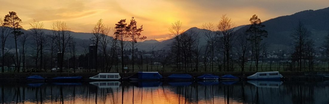 Im Aaretal angekommen wechsle ich dann auch bei Schinznach-Bad wieder auf die Radwege und komme dabei in den Genuss eines schönen Abendrotes über der Staffelegg.