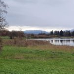 Unglücklicherweise war es einer der wenigen Momente während der heutigen Rundfahrt ohne Sonnenschein. Deshalb hinterlässt das Bild keinen frühlingshaften Eindruck. Auf dem Wasser war zudem nicht wirklich etwas los. Ein Schwan frass im Feld neben dem See in irgendeinem Gemüsefeld und suchte sich seine Leckerbissen zusammen, und irgendwo im Gehölz hämmerte ein Specht. Auch andere Laute von Vögeln waren zu hören, aber da kenne ich mich nicht aus.