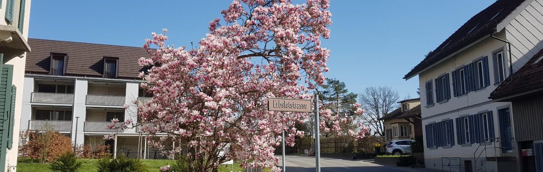 Zwischen den Häusern der Quartiere wird es langsam bunt. Nicht nur das Gelb der Forsythie, auch schneeweisse oder pinkfarbene Bäume und Sträucher blühen, nebst all den Blumen am Boden. In den Gärten wird aber auch hart gearbeitet. Der Rasen wird gemäht, vertikutiert oder überhaupt neu angesäht. Einige sind mit der Heckenschere unterwegs.