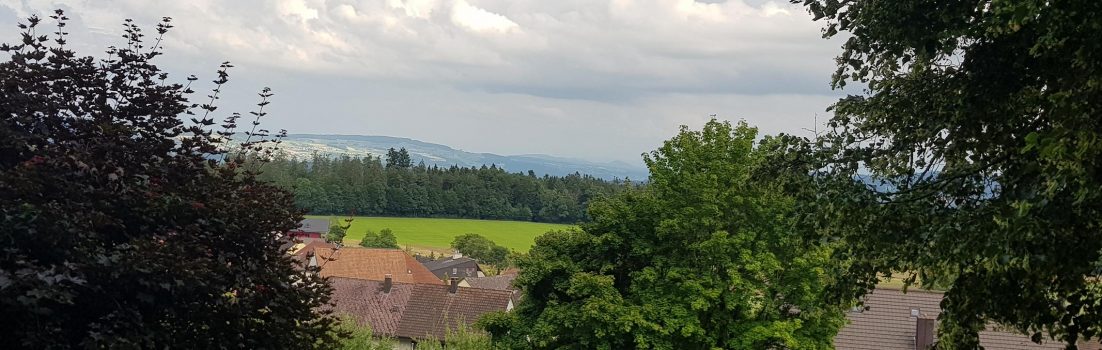 In den letzten Tagen sind zum Teil recht heftige Gewitter, teils begleitet von Sturmböen und Hagelschlag, über unsere Gegend gezogen. Von überschwemmten Kellern und Bahnhofpassagen war die Rede. Auch davon dass mehrere Storchennester vom Sturm zerstört wurden oder die Hagelkörner vor allem den Jungstörchen die Flügel gebrochen hätten. Höchste Zeit also, wieder einmal beim Storchenkreisel in Niederwil vorbeizuschauen.