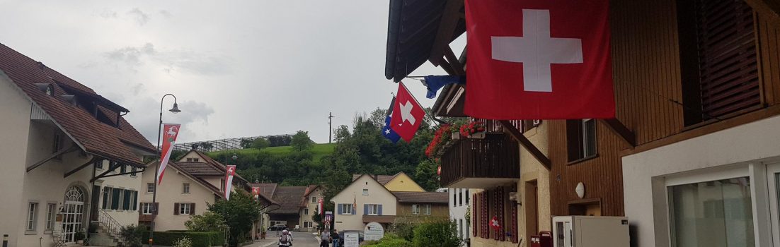 Über dem Jura werden die Wolken immer dunkler. Ich kurble über den Bözberg, hinüber und hinunter ins Aaretal. Es reicht gerade noch, die Runde nach Schinznach-Bad zu verlängern bevor die nächsten Regentropfen fallen. Langsam geht es auch diesmal vom tropfenden Himmel in einen weiteren Landregen über. Kein Wind, kein Gewitter, einfach wieder Regen.