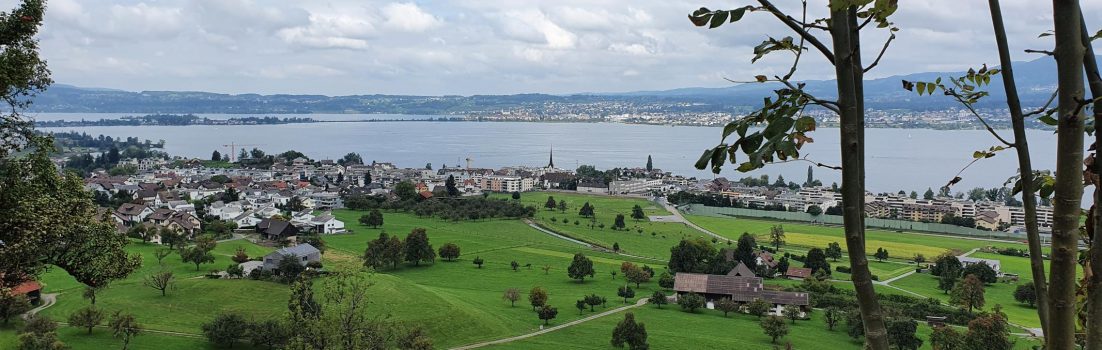 Bald verlässt der Weg die Ebene und klettert in die Höhe. So steil, dass den Inlineskatern empfohlen wird, die Rollen mit Turnschuhen zu wechseln. Die Sicht hier oben deckt allerdings das ganze Panorama des oberen Zürichsees ab.