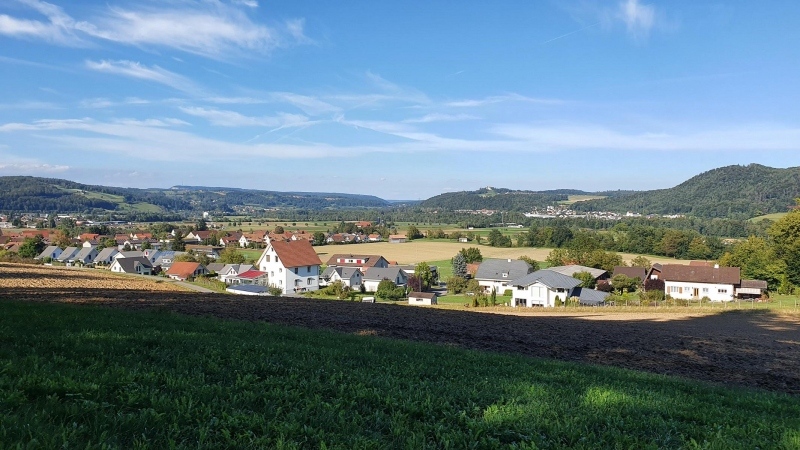 Zu diesem Zeitpunkt bin ich bereits auf dem Heimweg. Ich bleibe auf der linken Seite der Aare, nehme heute nach Aarau wieder einmal das “Wellenblech-Segment” von Biberstein obendurch nach Auenstein. Aus einer schönen Foto hinüber ins Seetal wird heute wegen der hohen Maisfelder nichts. Dafür nehme ich einen Weg entlang dem Waldrand, oberhalb Villnachern und habe mehr Glück.
