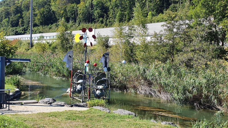 Der Radweg führt mitten über das Gelände der Alpiq bei Aarburg. Dabei habe ich obiges Wasserspiel entdeckt.