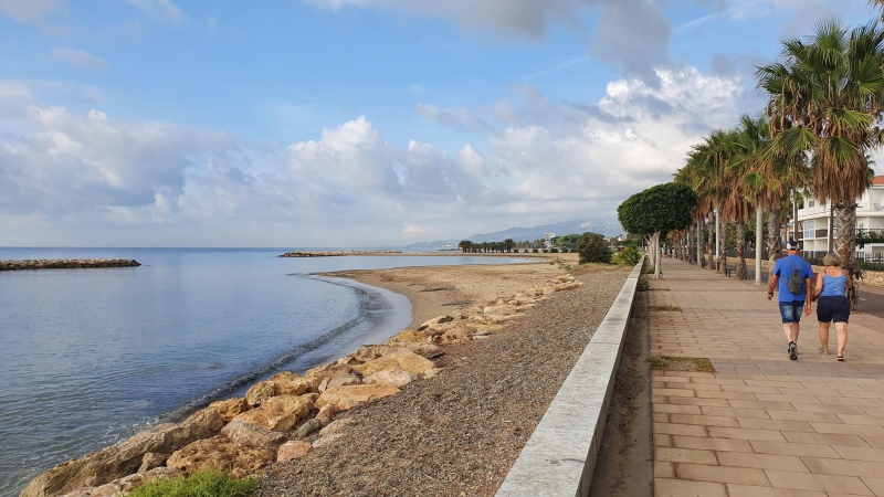 Der Strandweg ist eine breite Flanierzone. Für die Radfahrer ist ein separater Radweg angelegt. Durchgängig getrennt von den Spaziergängern. Heute Morgen war es schon recht warm, dennoch aber befanden sich vorerst keine Badegäste auf dem Sandstrand.