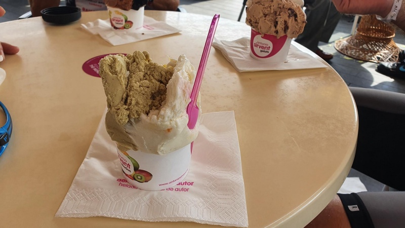 Es soll Tradition sein, dass man am Donnerstag, am Tag nach der Königsetappe und nach einer eher kurzen Rundfahrt, noch beim Weltmeister der Gelati einkehrt.