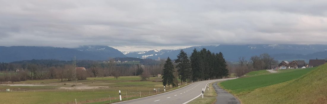 Die heutige geplante Runde war eigentlich eine andere. Ursprünglich hätte ich aus dem Limmattal das Furttal hinauffahren wollen. Aber als ich mich Baden näherte, und der Himmel über der Lägern voll Nebelschwaden hing, während eher westlich, eben über dem Reusstal, die Sonne schien, habe ich mich anders entschieden. Bei Baden habe ich den Durchgang nach Dättwil, hinüber ins Reusstal genommen.