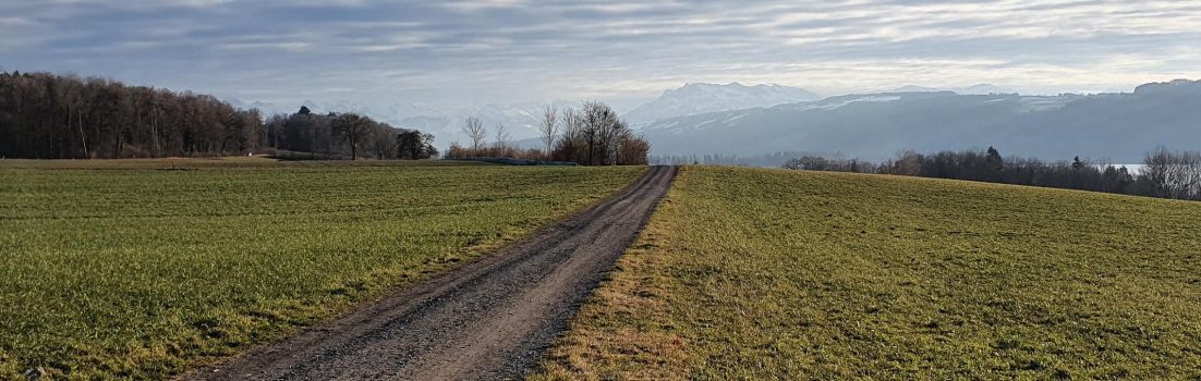 In Villmergen verliess ich das Bünztal nach Sarmenstorf hinauf und gelangte so nach Fahrwangen ins Seetal hinunter. Hier ein ganz ähnliches Bild wie im Bünztal. Am Alpenkamm schienen sich Dunst und Wolken zu stauen. Ich genoss einen Moment lang die Aussicht, bevor ich den Weg, entlang dem Hallwilersee zurück nach Seengen fortsetzte.