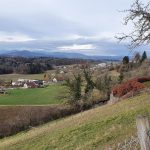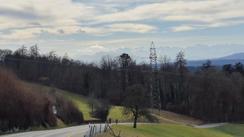 Während der Abfahrt nach Busslingen hinunter schaute ich mal kurz zurück, das Reusstal hinunter, zum Jura. Der Himmel trübte sich langsam ein. Die ehemals scharfe Kante der nächsten Wetterfront zerfiel.