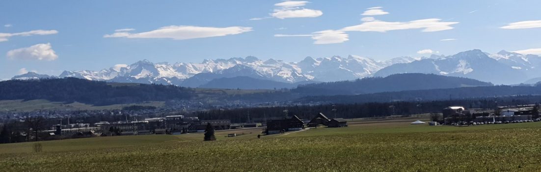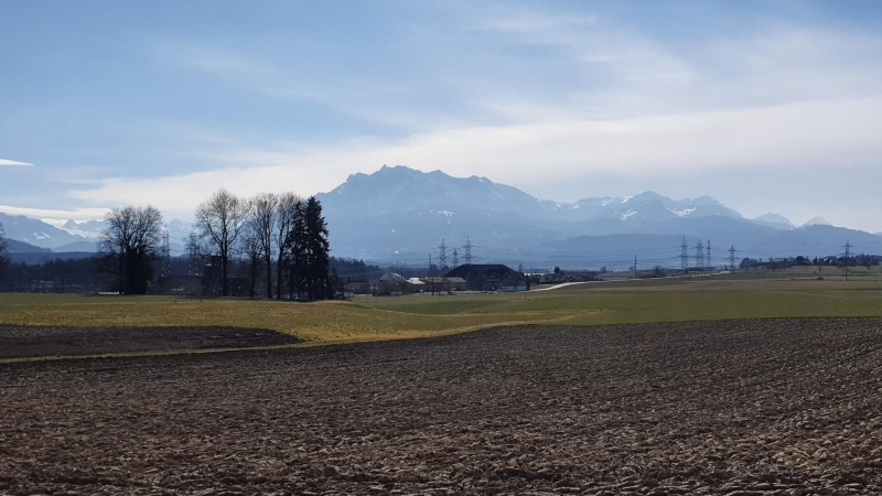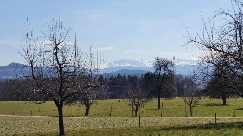 Die Fahrt ging weiter, das Reusstal hinauf. Bei Bremgarten über Besenbüren etwas in die Höhe. Damit gab es auch einen ersten Blick hinüber zum Alpenkamm.