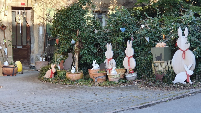 Ich radelte also das Aaretal hinauf und kam unter anderem an einer kleinen Werkstatt für Osterhasen vorbei. In allen Grössen standen sie einsatzbereit da.