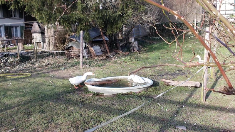 Für den Rückweg wollte ich aber nicht einfach wieder zurückfahren, sondern kurbelte mal vorerst zwar wieder zurück nach Wildegg, bog dann aber ins Bünztal ab, hinauf nach Othmarsingen. Da gibt es eingangs des Dorfes ein Gehöft mit Gänsen im Garten. Da ist fast immer etwas los.