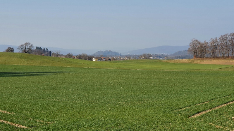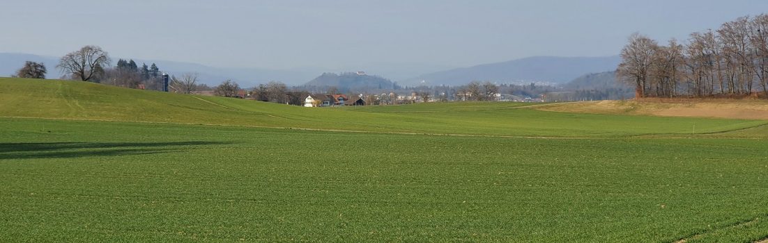 Normalerweise sieht man aus dem Birrfeld oder dem Bünztal den Alpenkamm. Nicht immer gleich klar, aber heute war da nichts. Vermutlich schwebt halt immer noch dieser Saharastaub in der Luft. Immerhin ist der Himmel wieder blau und die Wolken weiss.