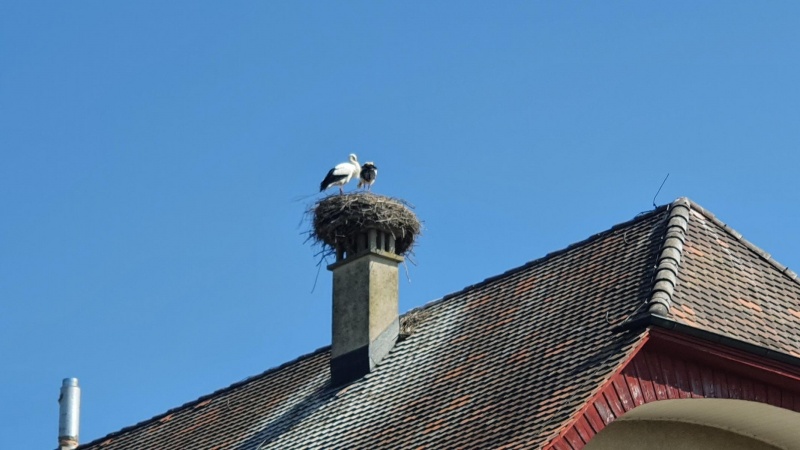 Kurz vor Sins kam ich an diesem Storchennest vorbei. Es befindet sich auf dem Kamin der Brauerei Einhorn. Da fuhr ich während des Winters mindestens einmal daran vorbei. Dabei sind mir diese beiden nicht aufgefallen. Möglicherweise haben diese ja wirklich im Süden überwintert und sind jetzt zurück.