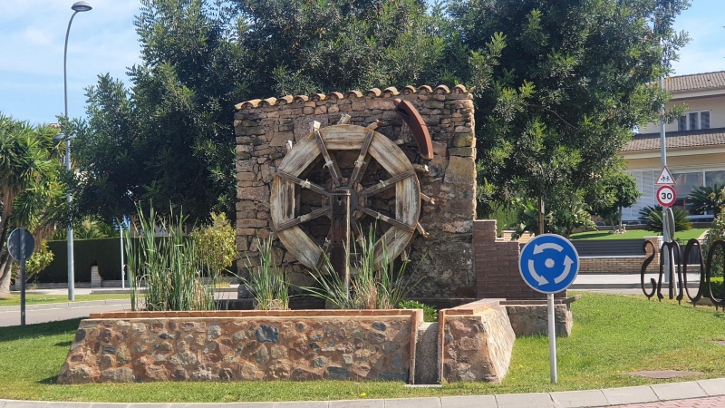 Auch einige Strassenkreisel sind sehr schön dekoriert. Oftmals haben sie etwas mit dem Weinbau zu tun. Diesmal allerdings dürfte es sich eher um ein Wasserrad handeln.