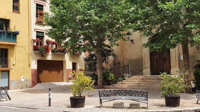 Das kleine Zwischensträsschen führt mich zu einem Dorf, Pradell de la Teixeta. Auch es liegt so in einer Art Talkessel. Die Häuser sind sehr eng zusammengebaut. Selbst auf der Hauptstrasse dürfte ein normal grosser Lastwagen grösste Probleme haben, durch das Dorf fahren zu können.