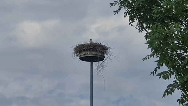 Im letzten Winter hatten dort ja im Storchennest auf dem Strassenkreisel zwei Störche überwintert. Ende März, kurz vor meinem Spanienaufenthalt, waren sie auch noch dort zu finden. Heute wollte ich dort wieder mal vorbeischauen.