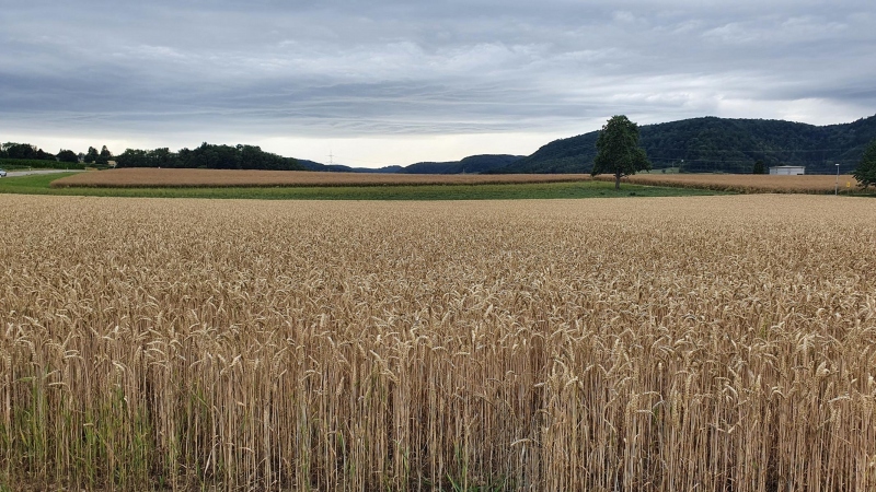 Doch als ich am Horizont auf der rechten Seite des Bildes bei den nächsten Hügeln ankam, stand dort schon die nächste, noch dunklere Wolkenbank, bereit. Erste Tropfen fielen. Ich kehrte, und folgte dem Villigerfeld in Richtung Aaretal, …