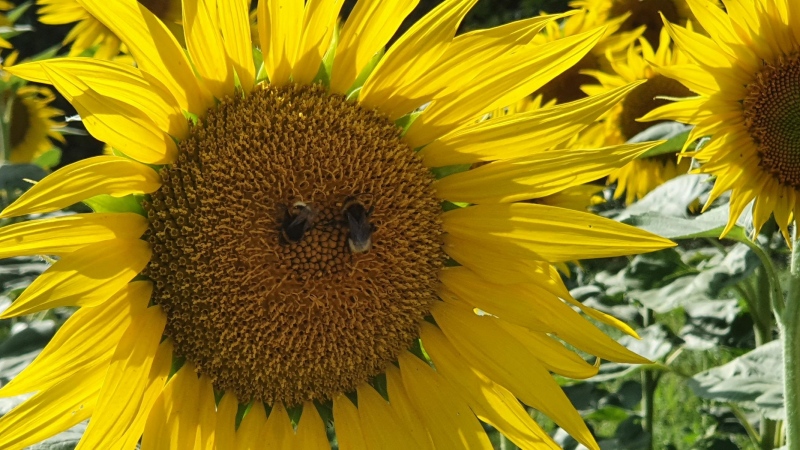 Beim ersten Feld, hatten noch längst nicht alle Sonnenblumen ihr Köpfe an die Sonne gestreckt.