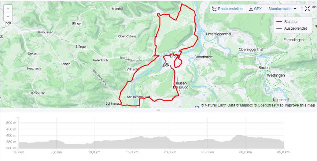 Brugg AG – Windisch – Brugg AG – Lauffohr – Stilli – Villigen – Rüfenach – Remigen – Riniken – Umiken – Villnachern – Schinznach-Dorf – Schinznach-Bad – Scherz – Hausen – Brugg AG